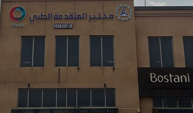 يقع مختبر المتقدمة الطبي في شارع عائشة بنت أبي بكر مقابل البيك بجانب محطة الدريس